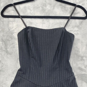 Vintage LA BELLE Dress Womens 3 Juniors Black Pin Striped Embroidered Party