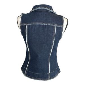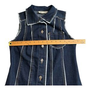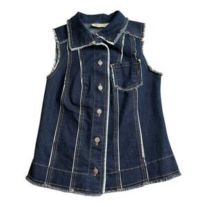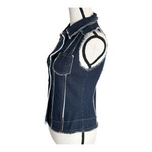 Vintage LA Blend Spandex Denim Short Vest Womens Dark Blue Small Bohemian Button
