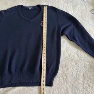 Vintage LA MODE Golf Sweater Mens L Navy Blue PGA V-Neck Ryder Cup Oak Hill 100% Cotton