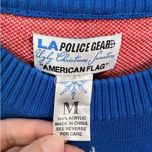 Vintage LA Police Gear God Bless America Flag USA Novelty Men Oversized Pullover Size Medium