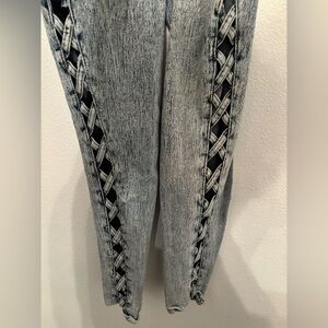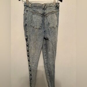 Great condition vintage skinny jeans. Criss cross cut outs side of legs. Acid wash. See measurements