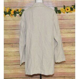 Vintage LAFAYETTE 148 100% Linen Open Front Jacket Size L Raw Trim Neutral Khaki