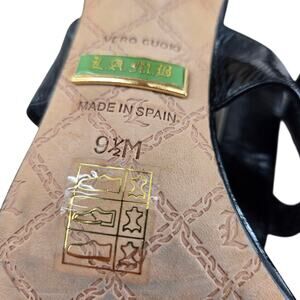 Vintage LAMB Heels Womens 9.5 Gwen Stefani Black Patent Leather Y2K Gold Tone