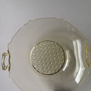 Vintage LANCASTER Yellow Depression Glass Handled MCM Retro Cottage Serveware