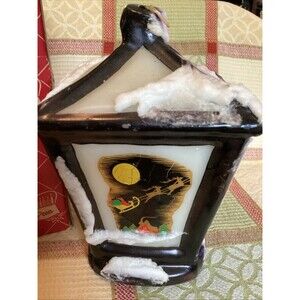 This Vintage LANTERN LITE CANDLE by Penn Wax Works features Christmas scenes, making it a festive addition to your holiday decor. The medium-sized, multicolor candle is made of wax and has a textured, decorative finish. This specialized candle comes in its original box and is from the 1950s, showcasing a classic style perfect for vintage collectors. Whether used as a pillar candle or displayed as a decorative piece, this unique Lantern Lite Candle adds a touch of nostalgia and holiday cheer to any Christmas celebration.