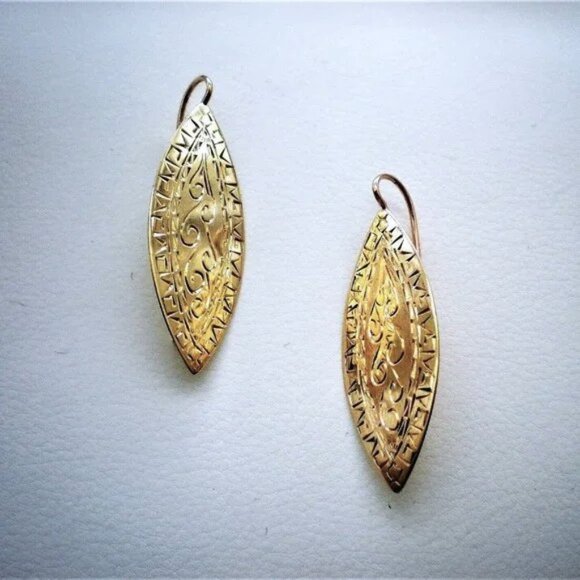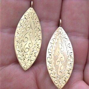 Gorgeous Vintage LARGE LONG solid 14K Yellow Gold Dangle Drop Pierced Post EARRINGS (marked on back "14K" and acid tested). They weigh about 6.3 grams and are in great MINT vintage used pre-owned condition. Measure about 1 11/16" in length (with hooks) by about 5/8" in their widest.