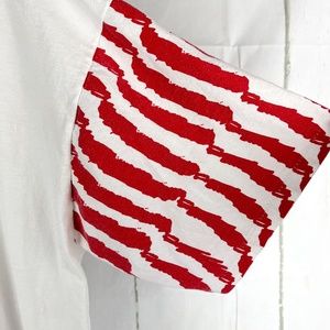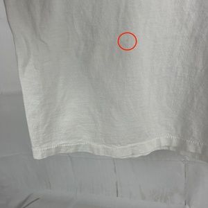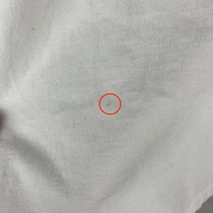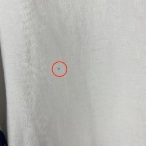 -Couple light stains on front of shirt (upper right chest, lower right, both circled in red in photos)