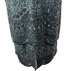 Vintage Laurence Kazar Fully Beaded Art Deco Dress Cruise Wedding Party Formal