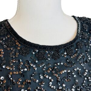 Vintage LAURENCE KAZAR Black Fully Beaded Shift Dress Short Sleeve Silk Art Deco