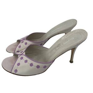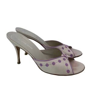 Vintage L'Autre Chose Capretto Pale Pink Polka Dots Slide Heel Sandals 38 1/2