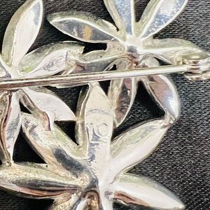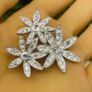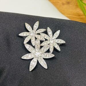 Vintage LC Liz Claiborne Flower Floral Brooch Pin with Clear Rhinestones 1195