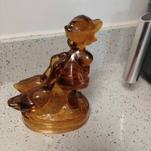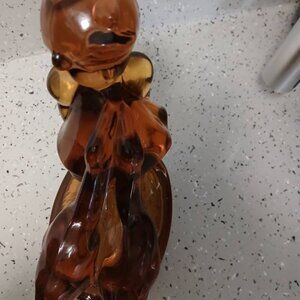 L. E. Smith Amber Glass Girl with Geese Figurine 7.5" Heavy Glass. Perfect Condition, no chips or cracks