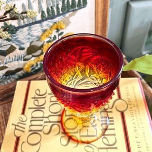 Vintage LE Smith Amberina Eagle and Shield Wine Goblet Glass