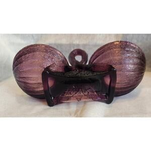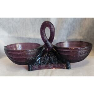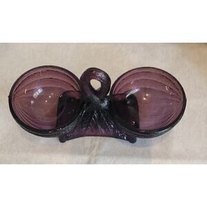Beautiful vintage pressed amethyst glass handled double dish made by L.E. Smith Glass Company, circa 1950s–60s.