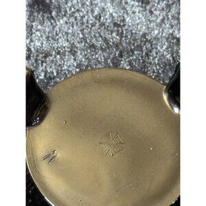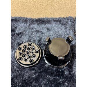 Vintage Black & Silver Ceramic Flower Frog Vase With Greek Key Design