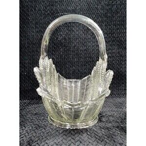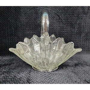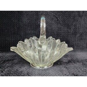 Vintage LE Smith Feather Glass Basket – Clear Pressed Glass, Mid-Century Design