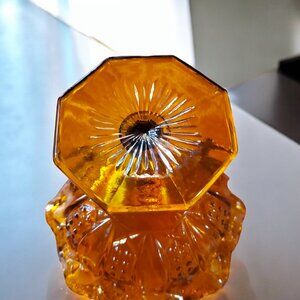 Vintage LE Smith Glass Heritage Quintec Amber Glass Pedestal Compote Candy Dish