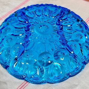 Vintage L.E. Smtih Glass Moon and Star Colonial Blue 8-1/2" Round 3 Part Relish Dish. This plate is in excellent vintage shape, with no cracks or dings.
