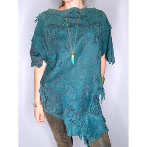 Vintage LEATHER Suede Fringes Top Blouse Asymmetrical Leather Blouse SOFT S