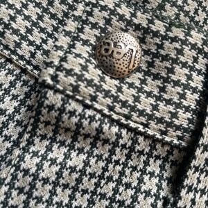 Its a houndstooth design, in a dark green-gray with light gray and off white.