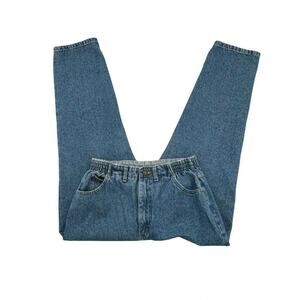 Vintage LEE Denim Jeans Women's Size 12P Tapered Leg High Rise Elastic Waistband Stonewash Pockets Blue