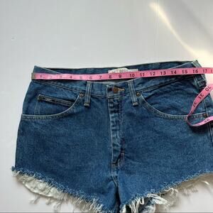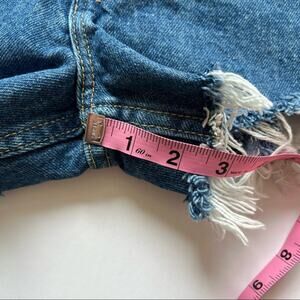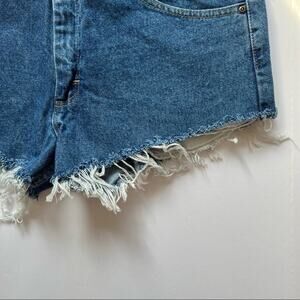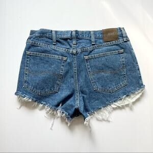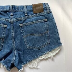 Vintage LEE Denim Shorts 32" High Rise Distressed Hem Blue Jean Shorts