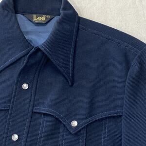 The Vintage LEE Pearl Snap Waffle Knit Shirt is a classic 70s-80s Western-inspired button-up with a spread collar and pearl snap closures. Made from cotton in a solid blue color, this shirt features a waffle knit fabric type and long sleeves for added warmth in the colder seasons. Perfect for casual, travel, or workwear occasions, this shirt exudes a vintage charm with its retro design elements and Lee brand label. Easy to care for with machine washable instructions, this shirt also includes pockets and is a timeless addition to any man's wardrobe.