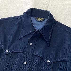 Vintage LEE Pearl Snap Waffle Knit Shirt Long Sleeve 70s 80s Western Pearl Snap