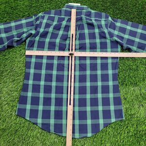 Vintage LEE Plaid Button Shirt Large 22x30 Green Blue 80s