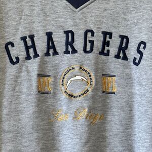Vintage LEE Sport Sweatshirt Men Size 2XL NFL San Diego Chargers Gray Top Blue