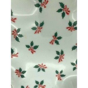 Vintage LEFTON China Hand Painted Holly Berry Christmas Tree Candy Dish #2387. No damage I could find. 8 in. x 7 in.