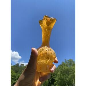 Vintage LEFTON ? Orange and White Swirl Art Glass Vase 6 1/2” TALL