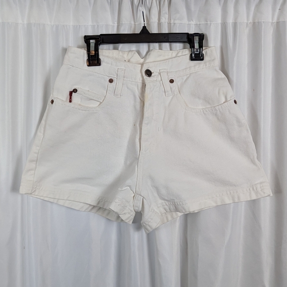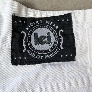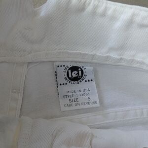 Size 5 Vintage LEI high rise denim shorts from the late 90s. The denim itself is in excellent condition, it's a very sturdy cloth. There is some light staining and a single dot of rust on the front I can't get out. The staining isn't super noticeable when the shorts are on. These would also be a great candidate for a dye job!!