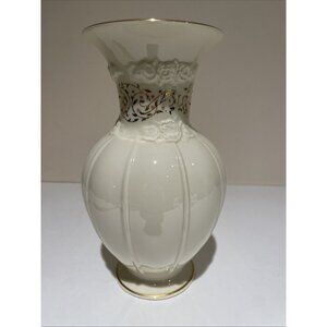 Vintage LENOX Rose Brocade Flared Vase Jeweled Collection 8 3/4" Textured USA