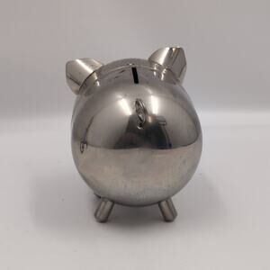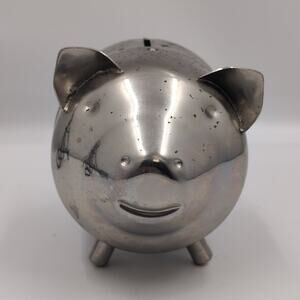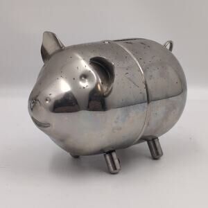 Vintage LEONARD Silver Tone Pig Piggy Bank (Hong Kong)