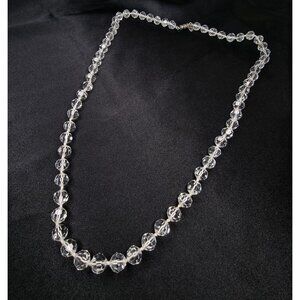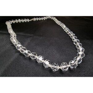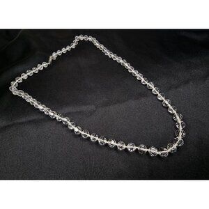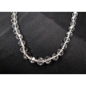 Materials: The beads are large, round, and highly faceted glass or crystal. This faceting is key, designed to catch and refract light from every angle, mimicking the brilliance of rock crystal or high-quality diamonds. The simplicity of the all-clear, single-strand design is a nod to fine jewelry classicism. โจ