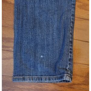 There are some worn spots towards the bottom of the leg as shown in pictures. They maybe how the jeans were originally made. Otherwise, in excellent pre-owned condition. The zipper and button function properly. Please review all pictures prior to purchase. Grab these comfy jeans today to add them to your wardrobe today!