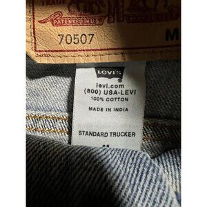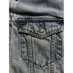The jacket has a relaxed fit and is made of lightweight denim fabric, which provides comfort and durability. It also features pockets and an unlined interior, making it a practical choice for everyday wear. Whether you're going for a retro or modern style, this Levi's denim jacket is a versatile piece that can be personalized to fit your look.