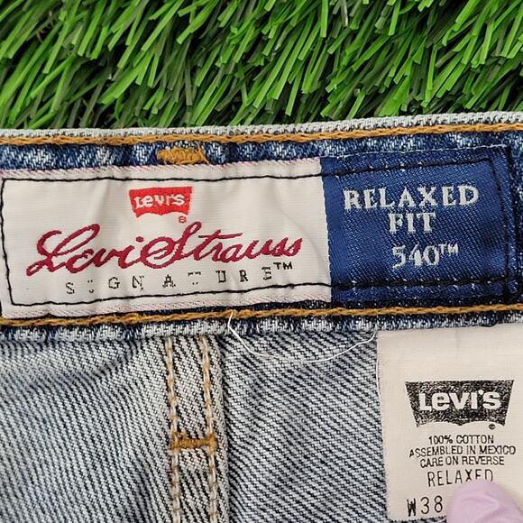 VINTAGE 90S LEVIS JEANS, LEVIS 540 BAGGY JEANS, FADED MEDIUM WASH JEANS, RELAXED FIT VINTAGE DENIM, LEVIS W38 L30 JEANS, VINTAGE LEVIS 540 RELAXED, LEVIS SIGNATURE JEANS 90S, FRAYED DENIM LEVIS