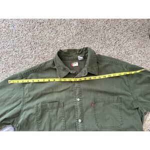 LEVIS RED TAB, Khaki Green Canvas/Denim, Long sleeved, button down shirt, Size Mens Large. In Very Good pre-owned condition. 100% Cotton. Heavy Duty, Durable shirt. LEVIS RED TAB. Vintage, 90's, Y2K