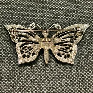 Vintage LIA Marcasite & Garnet Faux Rhinestone Butterfly Brooch Pin
