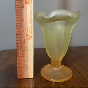 Vintage LIBBEY Frosted Sundae Glass with Scalloped Rim Yellow & Orange Base