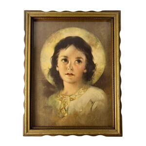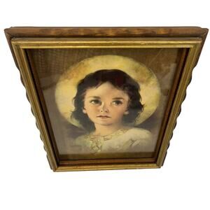 Vintage LIGHT OF THE WORLD Litho Print Jesus Young Boy Framed Florence Kroger