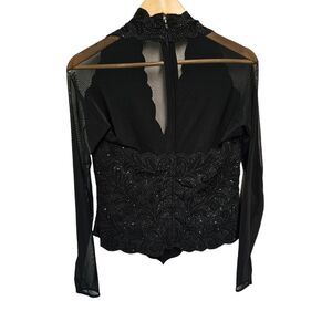 Vintage LILLIE RUBIN Black Beaded Mesh Long Sleeve Corset Top LARGE
