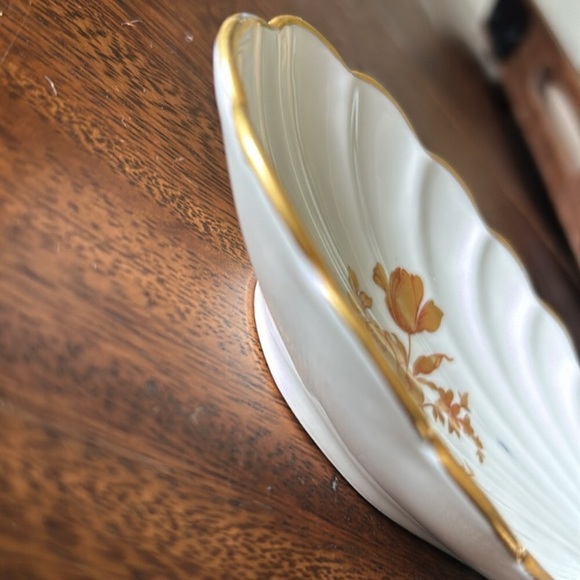 Vintage LIMOGES Gold Trim Gold Porcelain Shell Trinket Vanity Dish