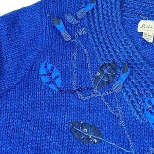 Vintage LIM's Cobalt Blue Angora Embellished Sweater Size Large