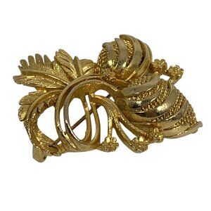 Vintage LISNER Gold Tone Textured Brooch Pin 3D Berries / Cones Flowers Leaves