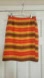 Beautiful warm colors! Stripes in warm hues of red, orange, golden yellow, sage green and brown. 100% silk, fully lined. (Actually a faux wraparound with button detail at waist.) Darted in back for a fitted, feminine silhouette. Invisible back zipper. Waist 27" Length 21" Excellent condition.