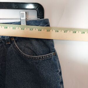 The Vintage LL Bean Women's Jeans 10M-T Double L are a classic pair of high-rise, tapered jeans in a solid blue color. Made from 100% cotton denim, these relaxed fit jeans feature a zip and button closure, medium wash, and flannel lining for added comfort. With a waist size of 30 inches and inseam of 30 inches, these jeans are perfect for a retro-inspired, laid-back look. The heavyweight denim and pockets add to the durability and functionality of these timeless pieces from the brand LL Bean.