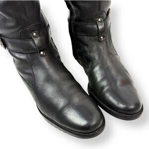 Vintage LL BEAN black leather tall equestrian boots with buckle trim